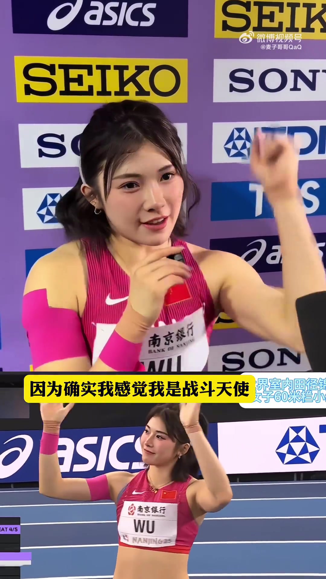 吴艳妮:我感觉头发轻了很多,其实我就是想要换个新的发型。我这个人比较讨厌麻烦,头发长的话,不论是洗头发还是吹头发都很消耗时间,所以干脆还是换个短发吧。在适应场地的时候,就有媒体说我的这个造型酷似战斗天使阿丽塔,就给了我一个灵感,所以我就以战斗天使的形象展现给大家。